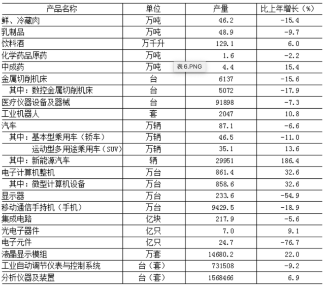表6 2022年规模以上工业企业主要产品产量