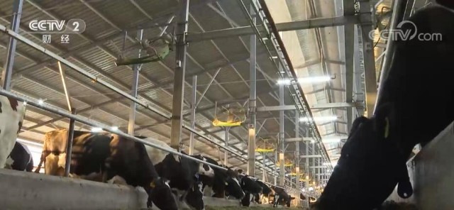 总台央视记者 陈烨炜:在这里我们看到,每头奶牛的耳朵上戴有两个耳标,这相当于它们的身份证,里面记录了包括出生年月、生过几个宝宝等信息。在它们的脖子上还套有这样的项圈,这个项圈还记录了包括它们每天走的步数、心跳,以及体温等各种信息。