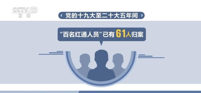 党的十九大至二十大五年间,“天网行动”共追回外逃人员7089人,其中,党员和国家工作人员1992人,追回赃款352.4亿元,“百名红通人员”已有61人归案。