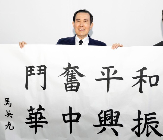 在祭堂耳房,马英九题写“和平奋斗 振兴中华”,以志纪念。