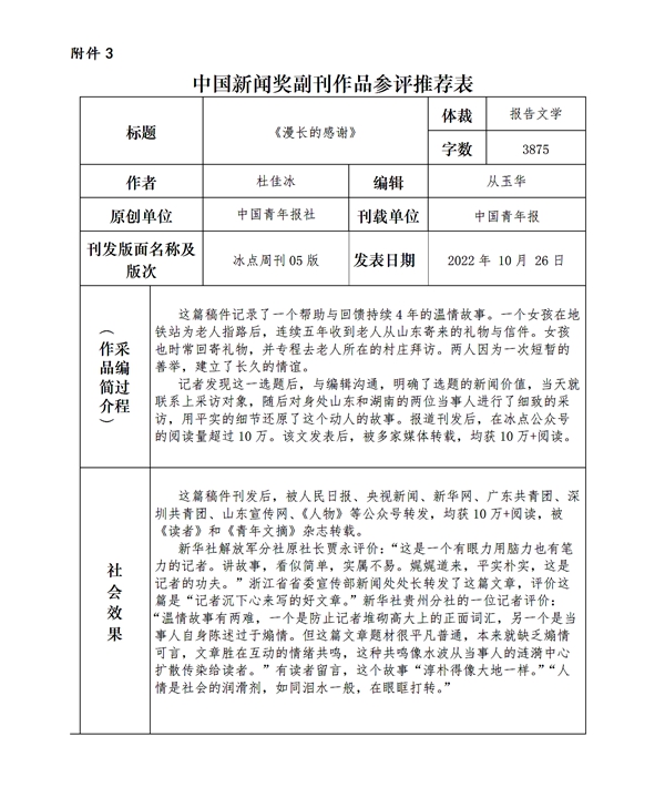 根据第33届中国新闻奖副刊作品和报纸、通讯社新闻专栏作品专项初评工作通知的有关要求,经向报社各部门单位征集、报社评委会研究推荐,报社领导同意,拟推荐以下作品参加专项初评。