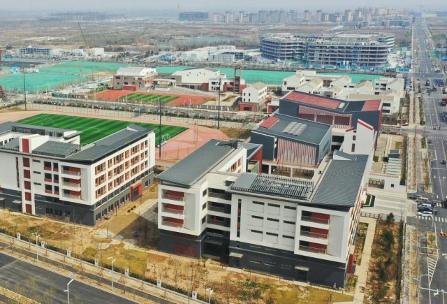 北京第四中学雄安校区和史家胡同小学雄安校区(2023年3月26日拍摄,无人机照片)。新华社记者 杨世尧 摄