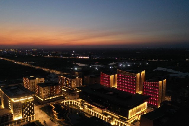这是雄安新区商务服务中心夜景(2022年9月7日摄,无人机照片)。新华社记者 朱旭东 摄