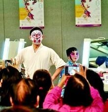 2022年11月,多元粤剧节目亮相香港“粤剧日”活动。图为粤剧演员向观众示范粤剧化妆。香港特区政府新闻处图片