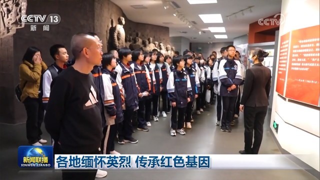 首都各界代表600多人来到中国人民抗日战争纪念馆,向抗战英烈和革命先驱敬献鲜花、寄托哀思。在甘肃兰州烈士陵园、 河南郑州中原英烈纪念馆、河北乐亭李大钊纪念馆,当地干部群众聆听先烈事迹,重温革命历史,汲取前行力量。在江苏淮安,社会各界人士来到新四军刘老庄连纪念园,祭奠革命英烈,传承红色基因。