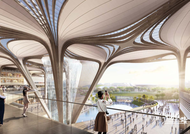 上海东站的西立面是车站建筑最主要的形象展示面,让人伫立在绿色自然环境中,充分感受生态城市的美好。