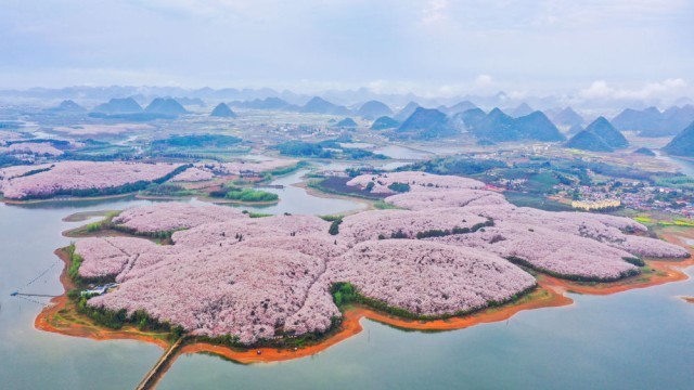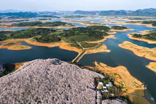 贵州省贵安新区樱花园(无人机照片,2022年3月17日摄)。新华社记者 欧东衢 摄