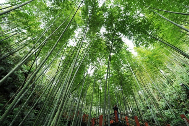 笔直的楠竹高耸入云,苍翠的竹叶层层叠叠,阳光从树梢洒进林间,山风把竹林吹成翻滚的“绿浪”。被誉为“西南竹海”的赤水,拥有连片竹林132.8万亩,森林覆盖率达82%,排在贵州县域第一位。竹笋、造纸、竹编工艺品,当地围绕竹子做足“文章”,竹产业年综合产值达73亿元。