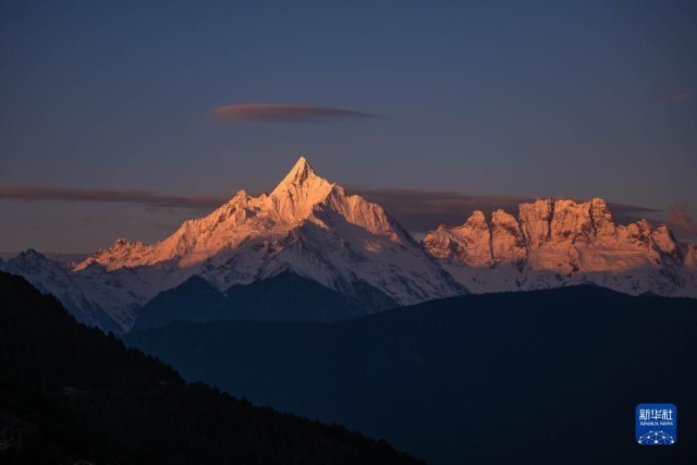 这是日出时分拍摄的云南省迪庆州梅里雪山一景(2023年3月10日摄)。新华社记者 胡超 摄