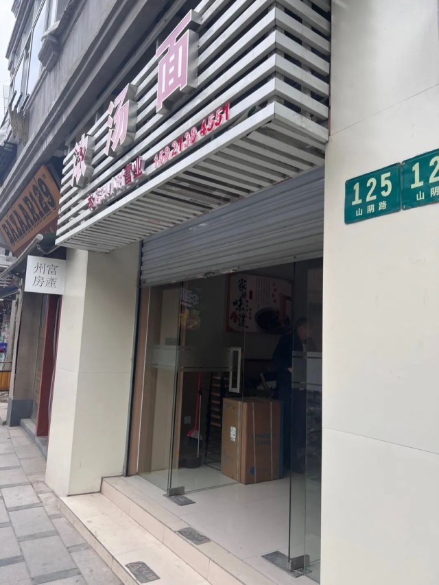 在山阴路光头生煎店旁,一家挂着24小时营业的浓汤面馆亟待开业。店主刘先生和合伙人坐在店内聊着今后打算。