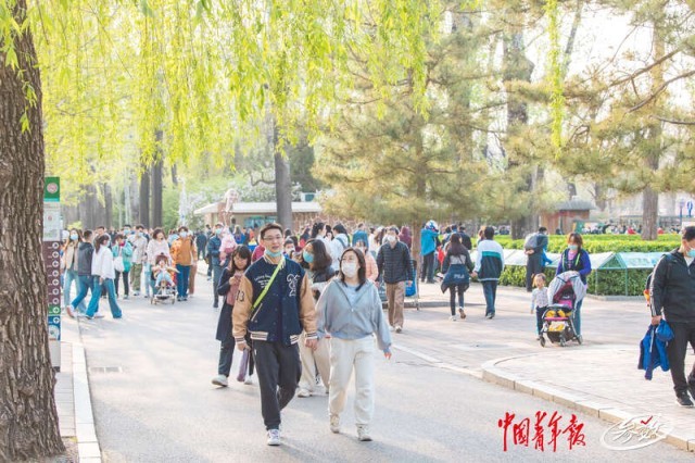 北京动物园内春意盎然、游人如织。 中青在线记者 林天羽/摄