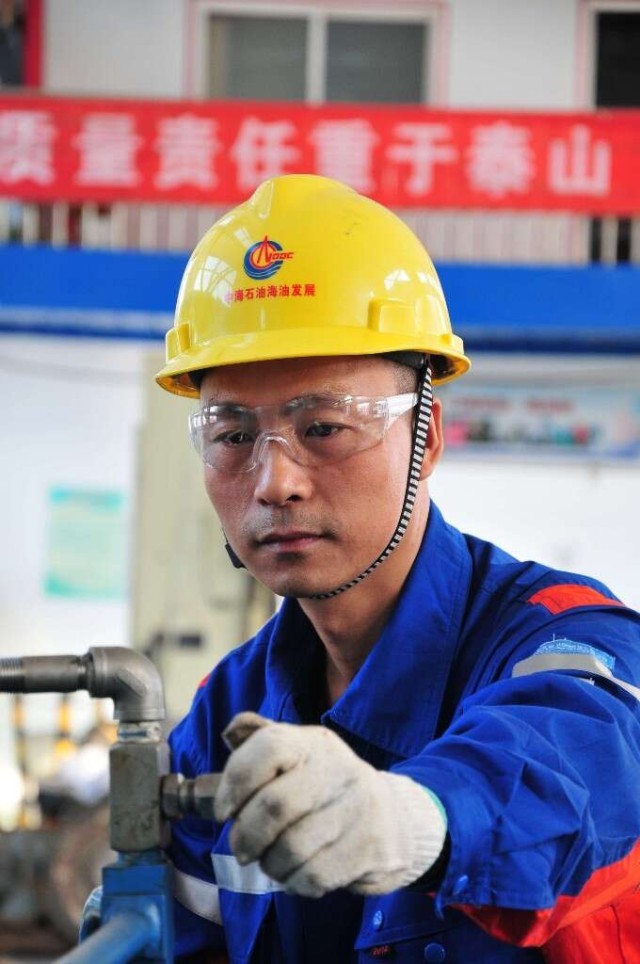 每年海上漂泊超过250天的苦,他肯吃;“三天三夜不睡觉,也要设备问题找出来”的事,他肯做;为避免手套里的含油碎末、杂质和毛刺进入内部泵轴,他在砭骨寒风中赤膊上阵,一双手冻得像露馅的包子;钳工的衣服总是沾满原油拿柴油都洗不出来,所以他经常去洗衣房捡别人淘汰的旧工装穿……