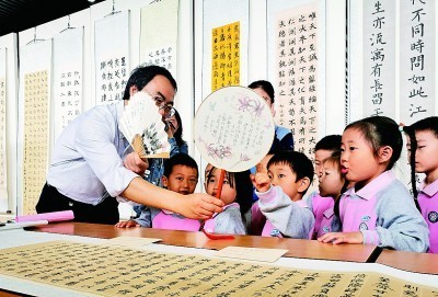 陕西师范大学与甘肃省东乡县两地师生共同举办书法作品联展暨国家通用语言文字推广活动。资料照片