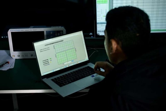 4月22日,四川稻城,一位年轻的科研人员正在查看水切伦科夫探测器阵列的实时运行状态。中青报·中青网记者 李强/摄