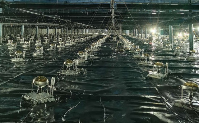 LHAASO装置WCDA三号水池内安装完成的光电倍增管。中科院高能所供图