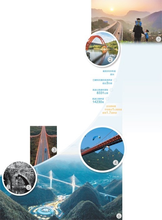 数量多。截至2022年底,贵州已建和在建的各类桥梁超过3万座,世界前100名高桥近半数在贵州。贵州高速公路通车里程达8331公里,将高速公路连接起来的,是14230座高速公路桥梁,这也意味着平均每过1公里高速,就有1.7座桥梁。