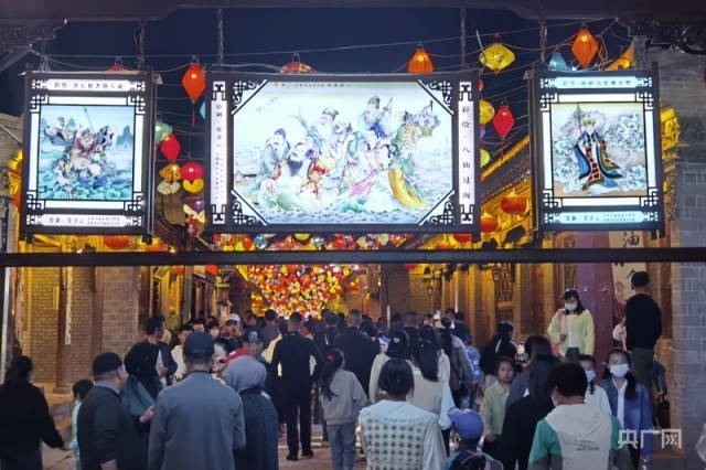 央广网西宁5月20日消息(记者张海东)5月19日晚,在青海省西宁市湟源县的丹噶尔古城内灯光璀璨,人流如潮,众多当地群众和游客聚集到这里,一睹湟源排灯的风采,共游览丹噶尔古城品河湟美味。当晚,“唐蕃古道·日月湟源”2023年湟源县排灯文化旅游节系列活动在这里拉开帷幕。