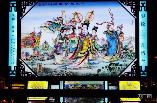 游人们一睹湟源排灯风采(央广网记者 张海东 摄)