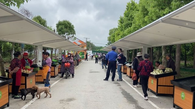 以前,村民们自家种的菜吃不完,就去马路边摆摊售卖,南桥镇南庄路是一条典型的城乡交界线,往北过天桥便是南桥镇的中心城区,“南供北需”,这里自然形成的“马路菜场”一度绵延百余米,影响交通和环境卫生。而今,在城管部门牵头下,奉贤区就近设置了疏导点,将“马路菜场”安置进“新居”,规范买卖、方便管理。