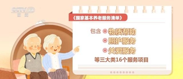 《国家基本养老服务清单》的内容,包含物质帮助、照护服务、关爱服务等三大类16个服务项目。