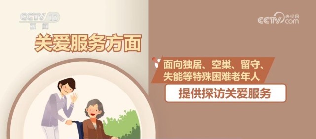 关爱服务方面,面向独居、空巢、留守、失能等特殊困难老年人提供探访关爱服务。