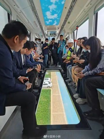 空轨列车车体悬挂于轨道梁下方凌空“飞行”,