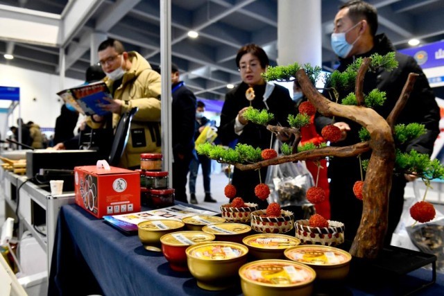 2月24日,市民在预制菜博览会上参观。当日,2023中国(日照)海洋食品预制菜发展大会在山东日照举行。来自各地的海洋食品预制菜亮相预制菜博览会。新华社记者 郭绪雷 摄
