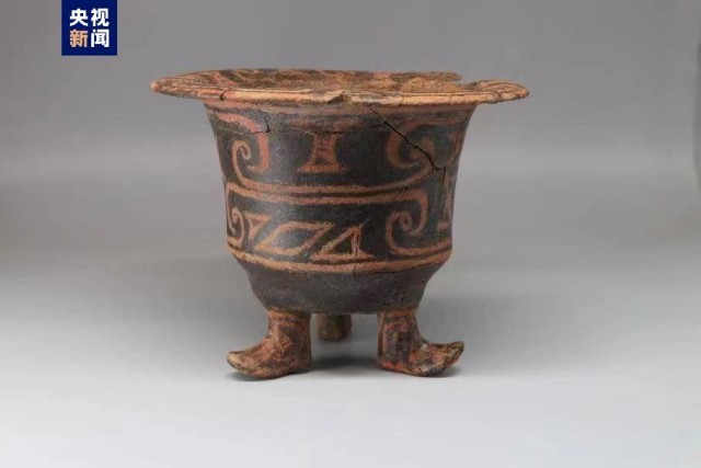 △大坨头文化M75出土的靴形足彩绘陶尊