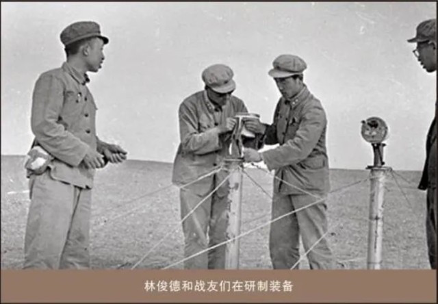 林俊德(左一)在和战友们研制装备。(永春县委宣传部供图)