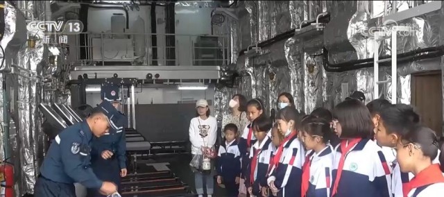 山东青岛中国海警局直属第六局邀请学生和家长登上执法舰,海警执法员与学生们共同开展打绳结、战伤救护、溺水急救等科目演练,带领学生们体验真正的舰艇生活。
