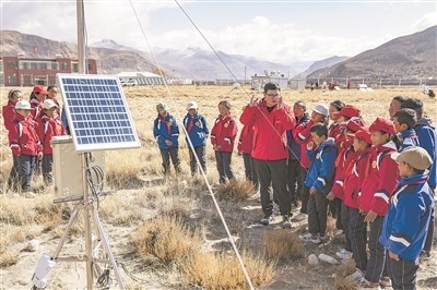 图②西藏日喀则市定日县扎西宗乡完全小学的学生在中国科学院珠穆朗玛大气与环境综合观测研究站参观科学观测仪器,零距离感受“第二次青藏科考”,在重点实验室听了一堂生动的科学课。