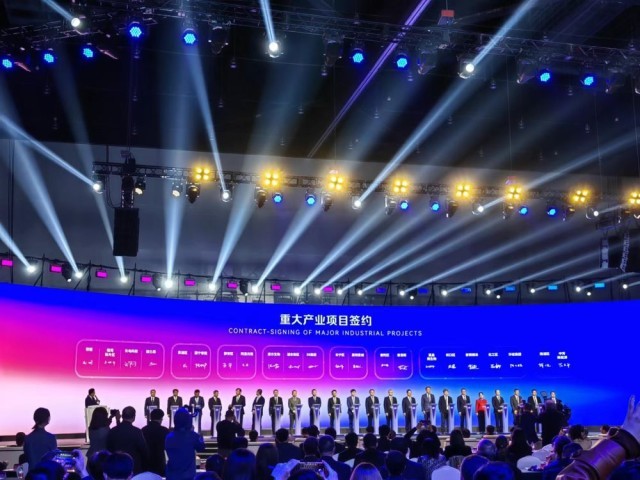 在4月6日举行的2023上海全球投资促进大会上,一批重大产业项目现场签约。新华社记者 龚雯 摄