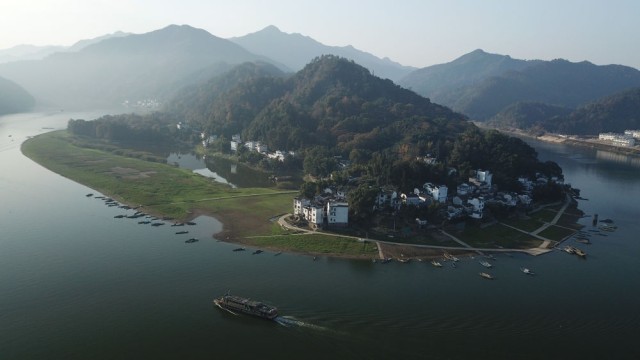 这是2019年11月16日拍摄的位于安徽的新安江山水画廊(无人机照片)。新华社记者 张端 摄