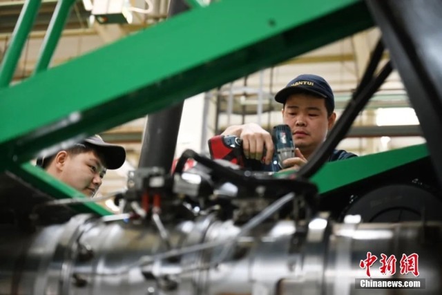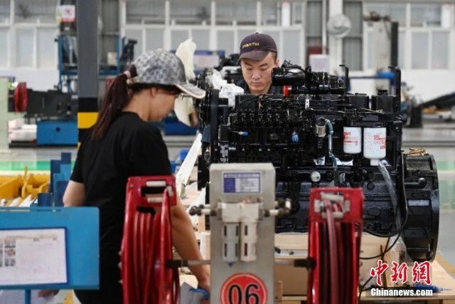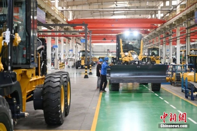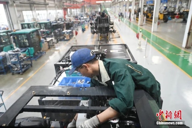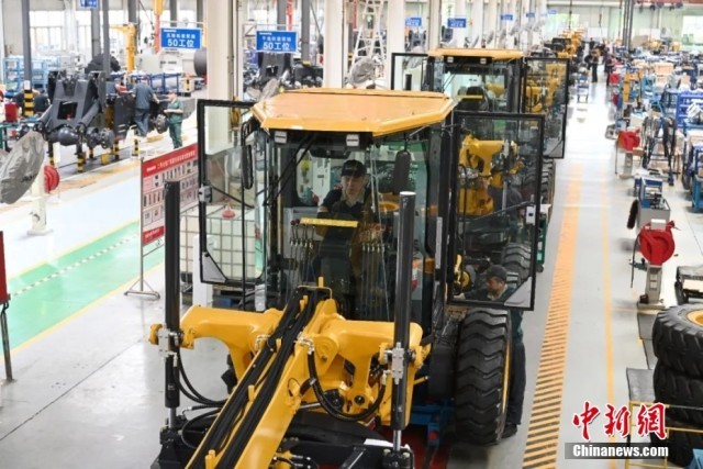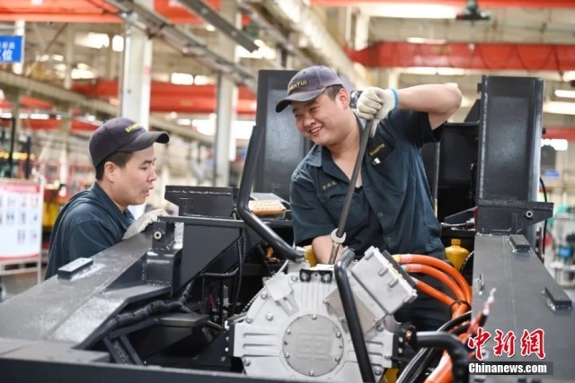6月2日,山东省济宁市某工程机械企业工人在进行装配作业。