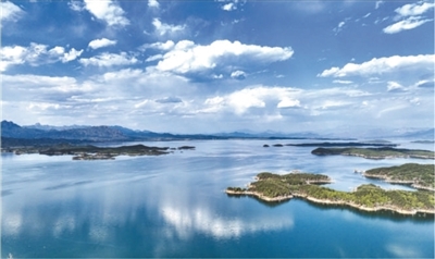 6月5日,北京密云水库天空湛蓝、水天一色。 本报记者 贺 勇摄