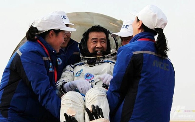 景海鹏:“神舟十一号报告已顺利返回,01感觉良好!”