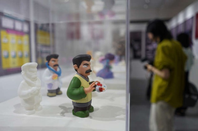 6月7日,浙江省绍兴市越城区孙端街道安桥头村鲁迅美术学院动漫基地,前来采访的记者观赏鲁迅文学作品系列文创产品设计展中的“鲁迅说”系列潮玩盲盒。安桥头村是鲁迅先生外婆家的所在地,当地接引鲁迅文化基金会、鲁迅美术学院等资源,打造“鲁迅外婆家”文旅IP。中青报·中青网记者 李峥苨/摄