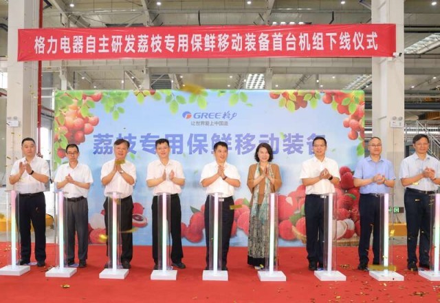 格力电器自主研发的荔枝专用保鲜移动装备首台机组下线仪式。格力电器供图