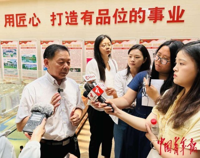 紫南村党委书记、村委会主任潘柱升接受媒体采访。中青报·中青网记者 林洁/摄