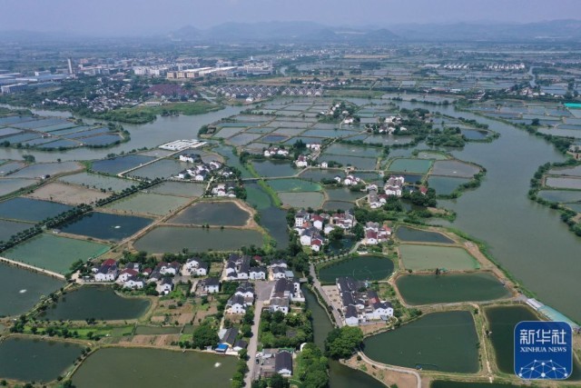 6月9日拍摄的浙江湖州市南浔区和孚镇新荻村(无人机照片)。近年来,新荻村大力发展水文化、渔文化、菱文化,结合自身特色发展休闲乡村旅游,打造美丽乡村升级版。新华社记者 黄宗治 摄