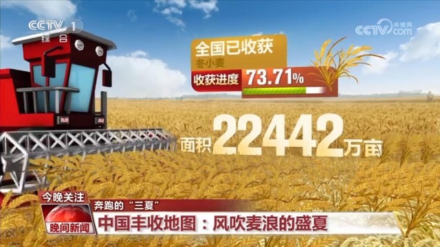 央视网消息:夏粮抢收忙,颗粒皆归仓。让我们继续打开本周的中国丰收地图,去各地的农田里,感受夏收的喜悦与繁忙。