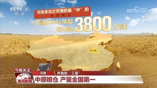而说到这些大粮仓中的“C位”,河南是当之无愧的最“中”的“中原粮仓”。河南小麦的产量自2021年起每年超3800万吨,占中国的近1/4,位居全国第一。