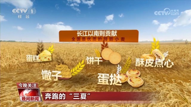 再向南看,与北方高筋、中筋小麦相对应的,长江以南则贡献了全国最优质的弱筋小麦,是蛋糕、饼干、馓子、蛋挞、酥皮点心等面食小吃的重要原料。