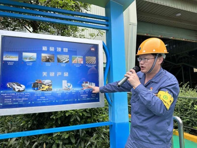 湛江钢铁热轧厂厂长朱蔚林介绍情况。中青报·中青网记者 林洁/摄