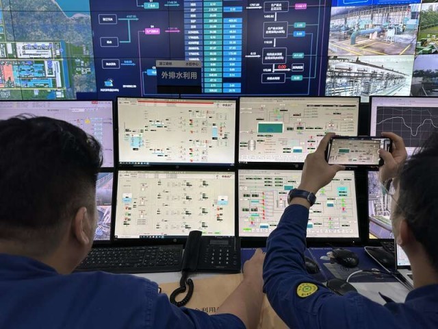 在湛江钢铁水控中心集控室,工作人员正在值班。中青报·中青网记者 林洁/摄