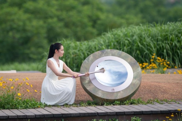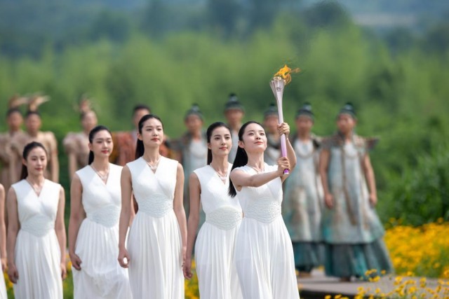 亚运火种在良渚古城遗址公园大莫角山