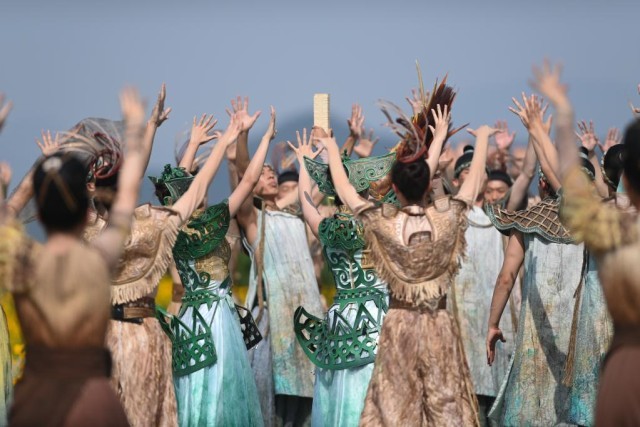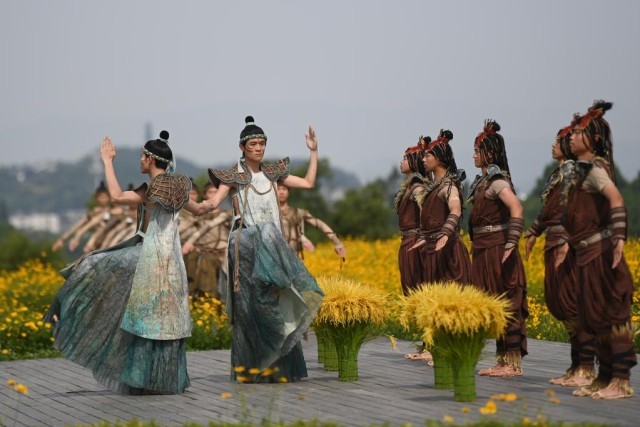 演出中的四十多位“良渚先民”