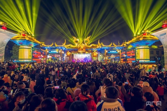 2023年1月18日,黄陂木兰花乡“木兰不夜城”正式开街,吸引了众多游客前往游玩(央广网发 黄陂区融媒体中心供图)