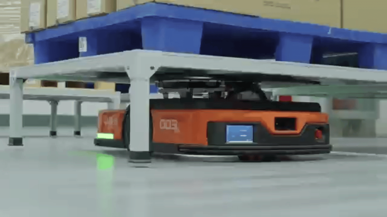 智能化仓库内,机器人正在搬运货物(央广网记者 张卓 摄)
