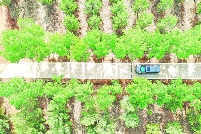 夏日,位于晋蒙交界、毛乌素沙漠风口地带的山西省右玉县新城镇道路两旁绿意盎然。新华社发